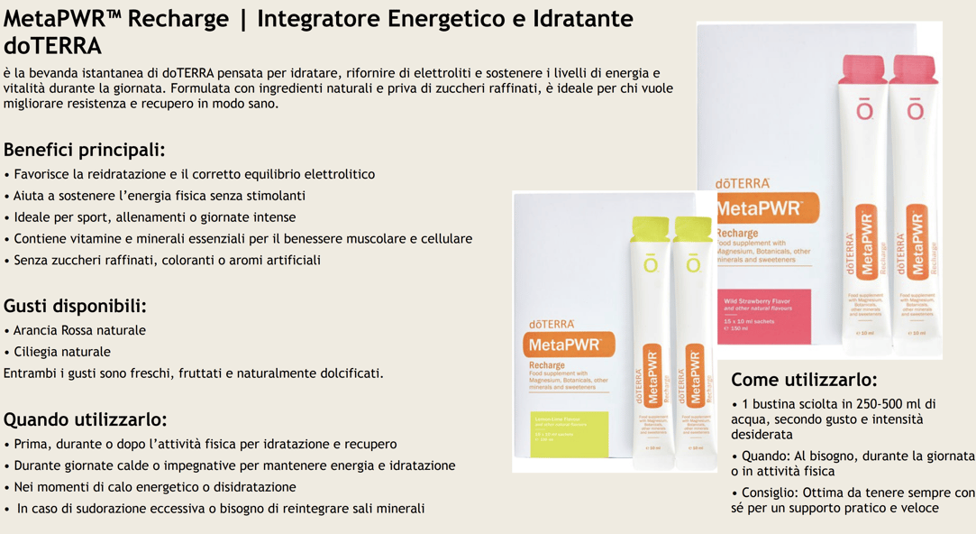 Una linea innovativa di prodotti studiati per supportare il metabolismo, l’energia e la vitalità, combinando oli essenziali e integratori avanzati per favorire il benessere quotidiano.